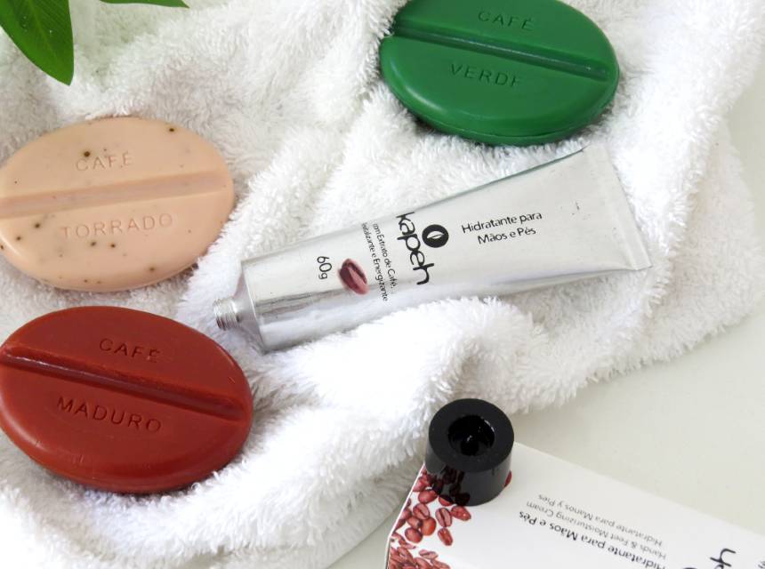 Ela não informa o volume de café que é destinado à Kapeh, mas conta que para a produção dos cosméticos utiliza não só o café torrado, mas principalmente o café verde, além de óleos e da casca.